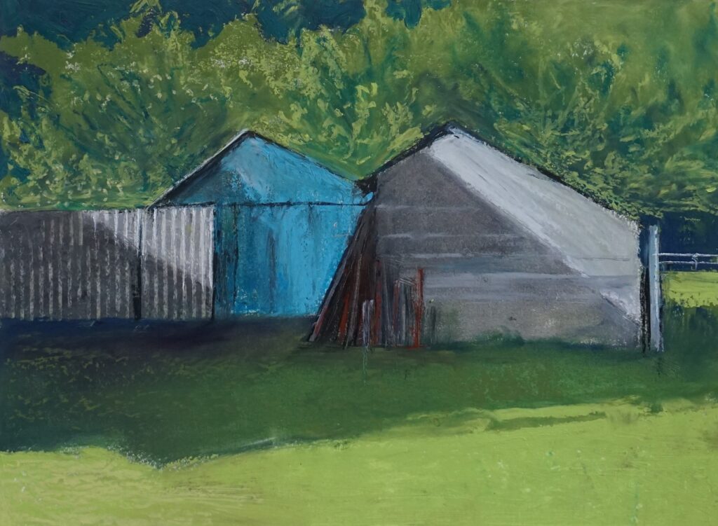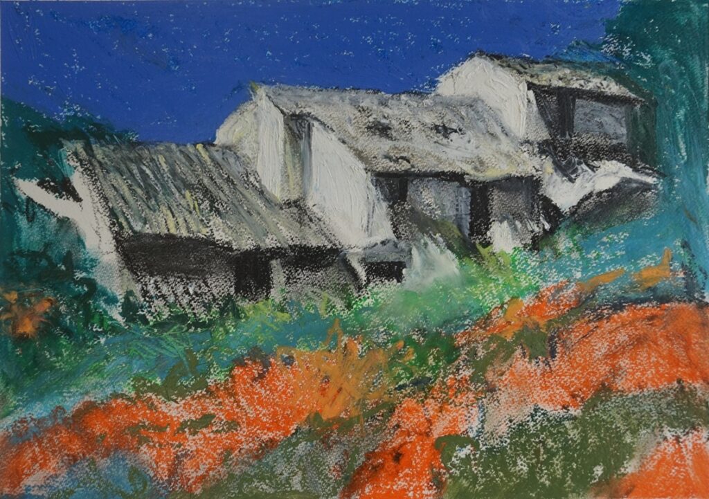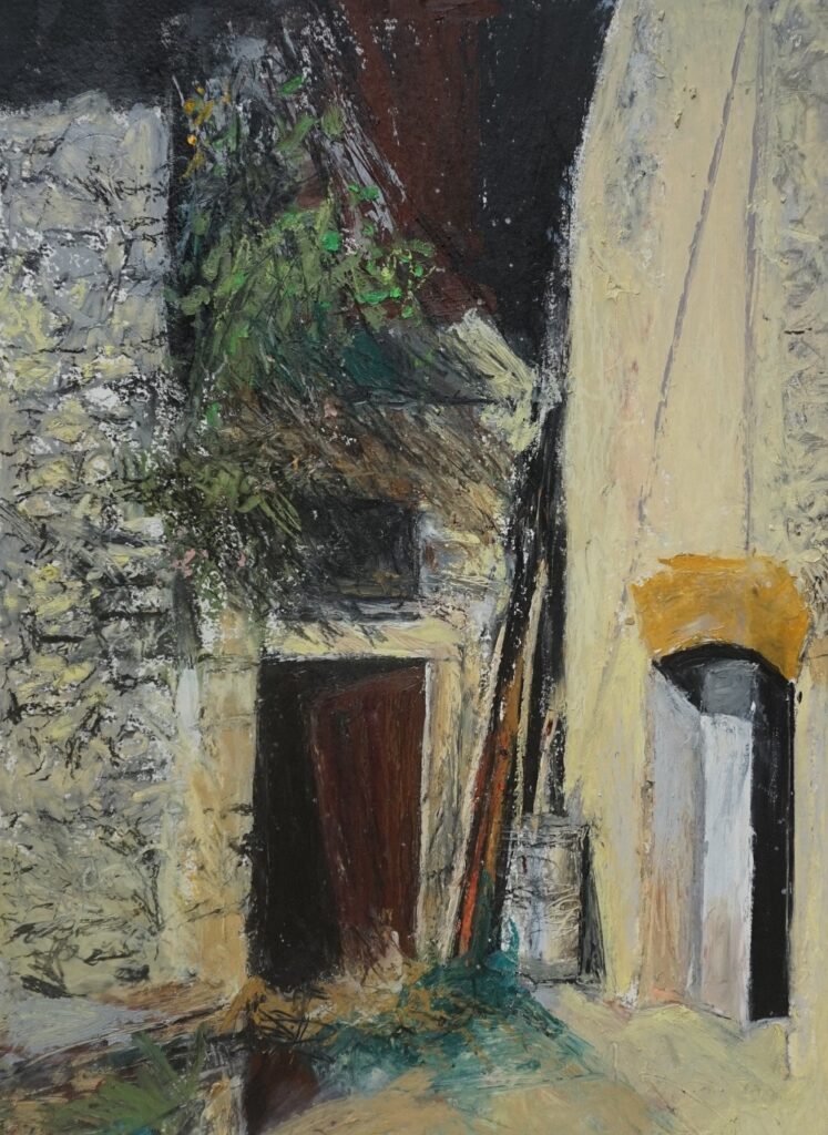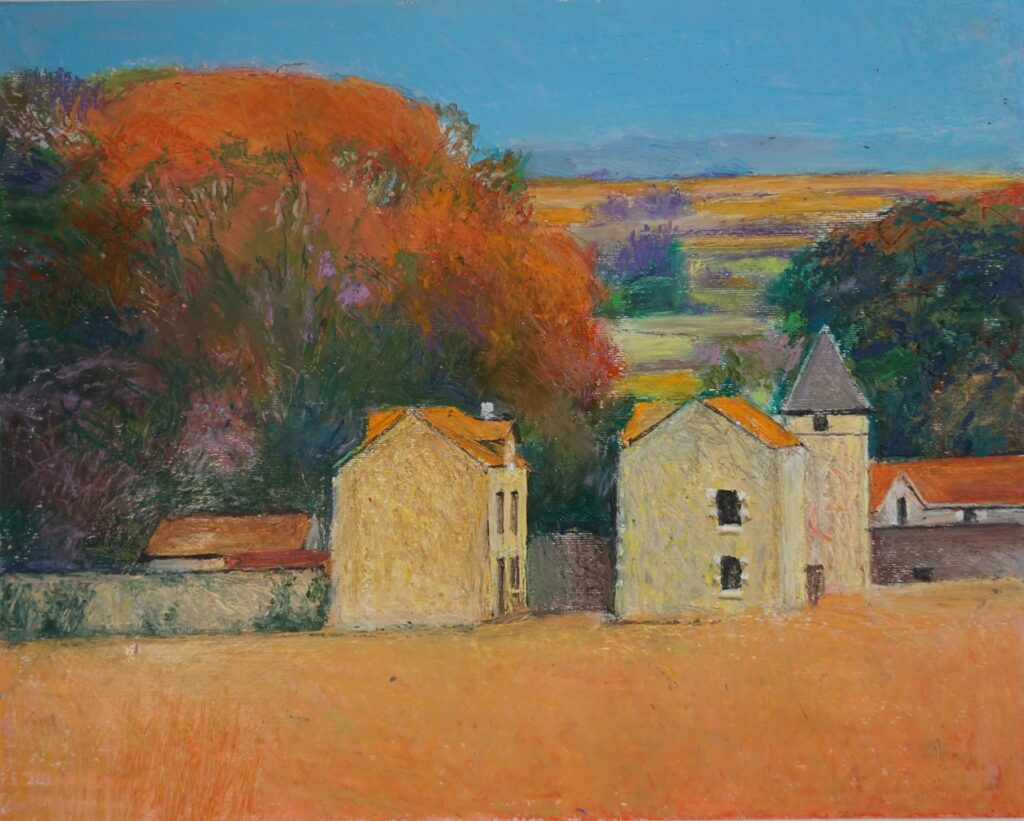 Landschap Rue du Valmeneret oliepastel papier 40×28